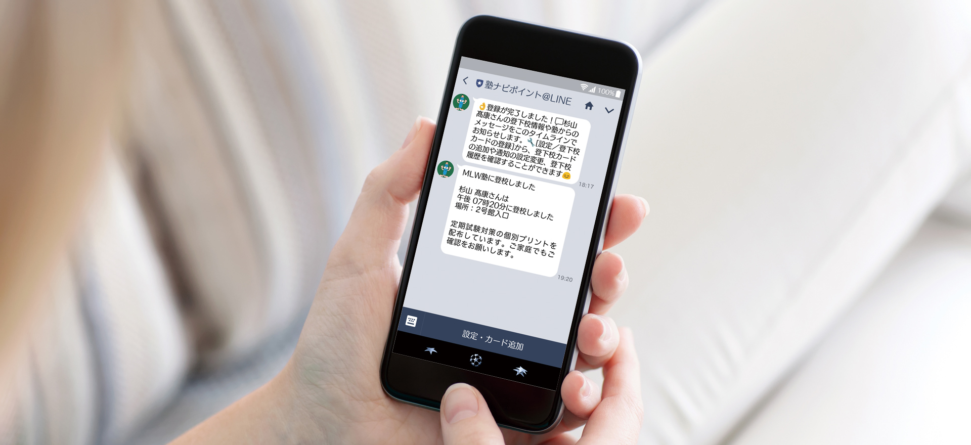 塾ナビポイントがLINEに対応いたしました。LINE機能は登下校通知、塾からのお知らせなどがLINEでも受け取れます。