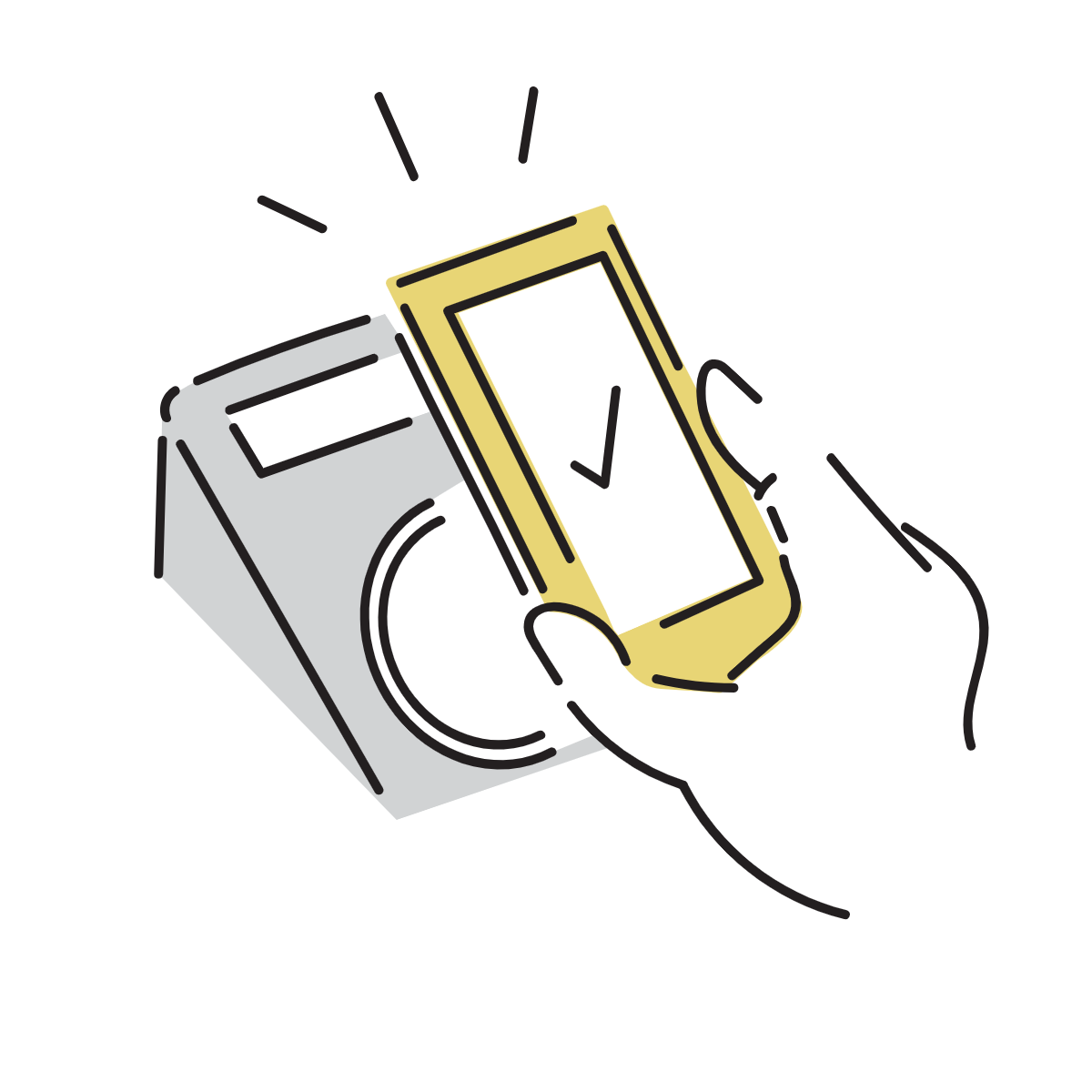 - 生徒さんが先生のスマートフォンにICカードなどをかざします。